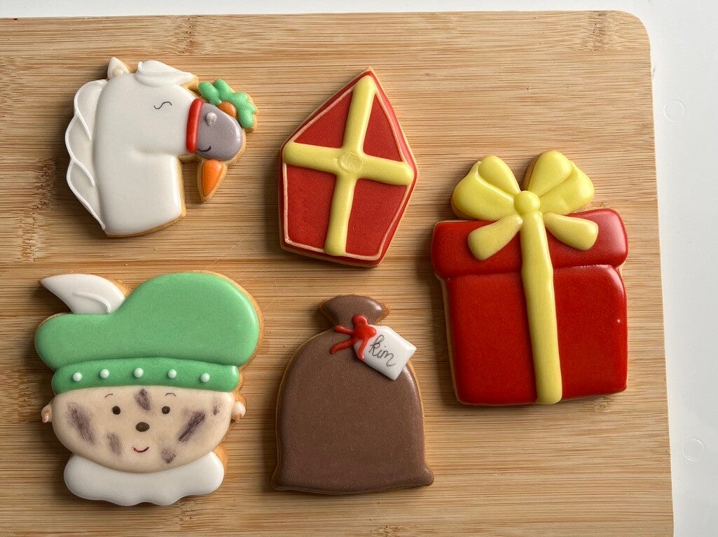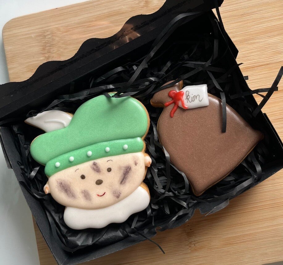 In dit mooie doosje zitten 2 grote handgemaakte koekjes (8–10 cm), prachtig versierd en perfect als luxe traktatie of cadeau. Met zorg bereid en feestelijk verpakt, zodat je iemand écht kunt verrassen. Een heerlijk ambachtelijk Sinterklaasmoment om van te smullen!